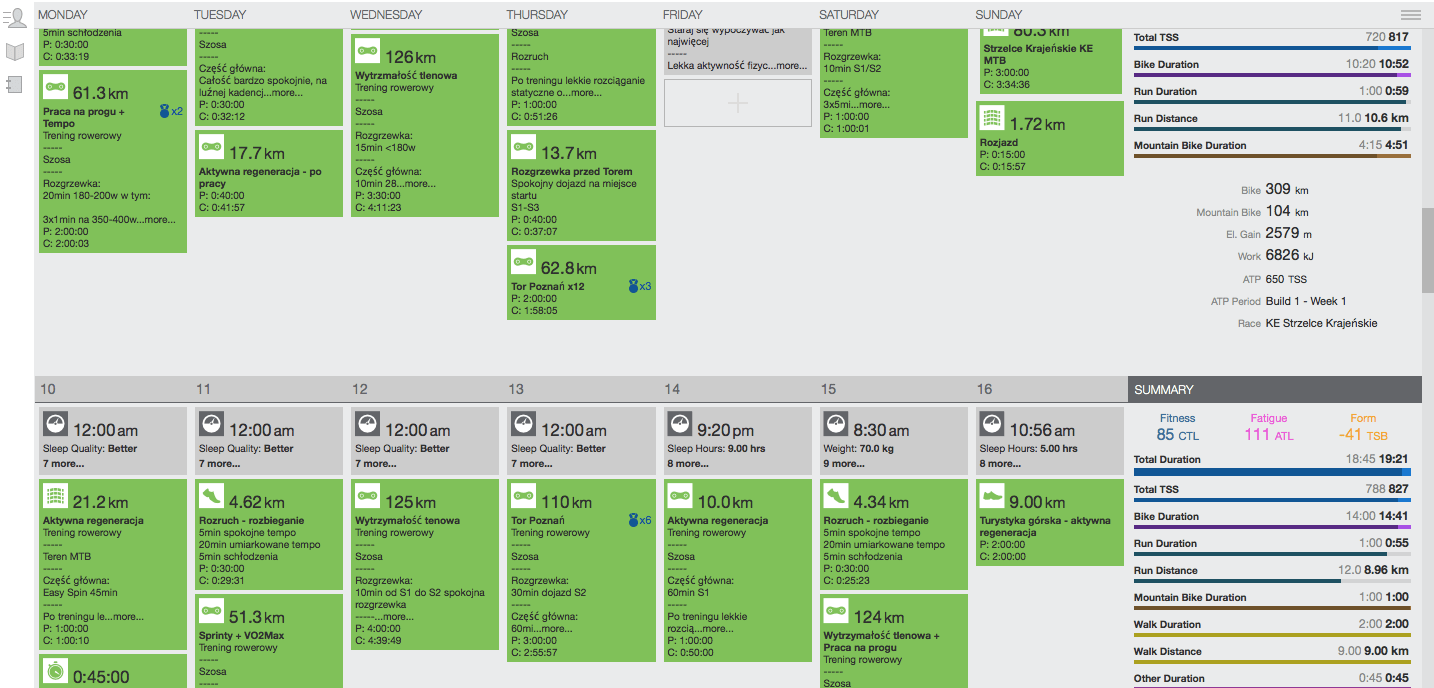 - Dokładna analiza! – Jeżeli chcesz trenować w myśl zasady “smart training” jesteś tzw. “data freak” czy też po prostu, chcesz zwiększyć swoją świadomość treningową to bardzo ważną zasadą jest dokładna analiza wykonanej sesji. Po co? Żeby dowiedzieć się w spokoju co w zasadzie działo się z Twoim organizmem podczas treningu. Dzięki dokładnej analizie jesteś w stanie dojść do błędów, które popełniłeś jednocześnie ustrzegając się ich w przyszłości. Co więcej, jeżeli nauczysz się skutecznie analizować swoje treningi przyniesie Ci to znaczące korzyści w planowaniu, nie każda sesja jest udana, dzięki dogłębnemu sprawdzeniu swojego treningu możesz w mądry sposób zaktualizować swój plan na kolejne dni, tak by czas przeznaczony na trening był wykorzystany jak najlepiej! 🙂