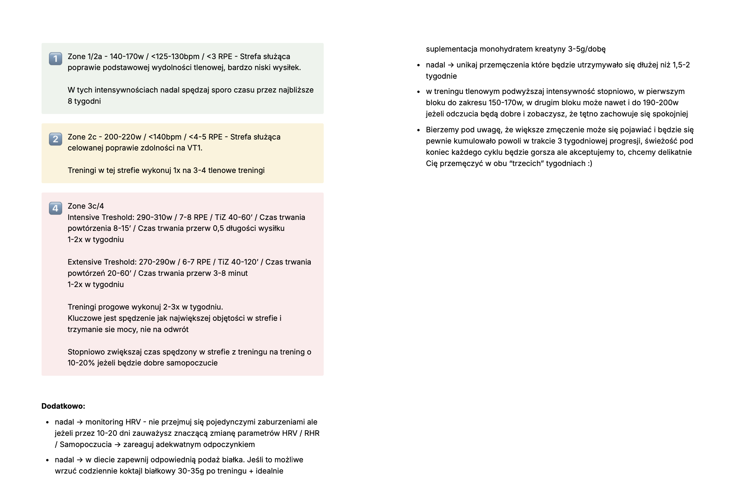 Przykładowa część ATP stworzona na podstawie dwóch konsultacji – wyznaczona konkretna droga do podążania, przekazane przykładowe treningi i najistotniejsze uwagi