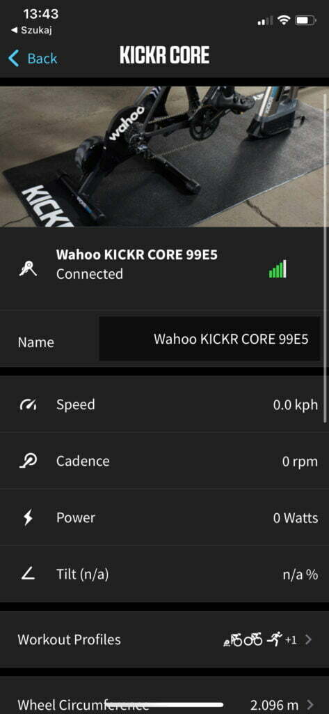 Wahoo też ma swoją skromną aplikację. Jest ok, do treningu czy ogarniania sprzętu w zupełności wystarczające.
